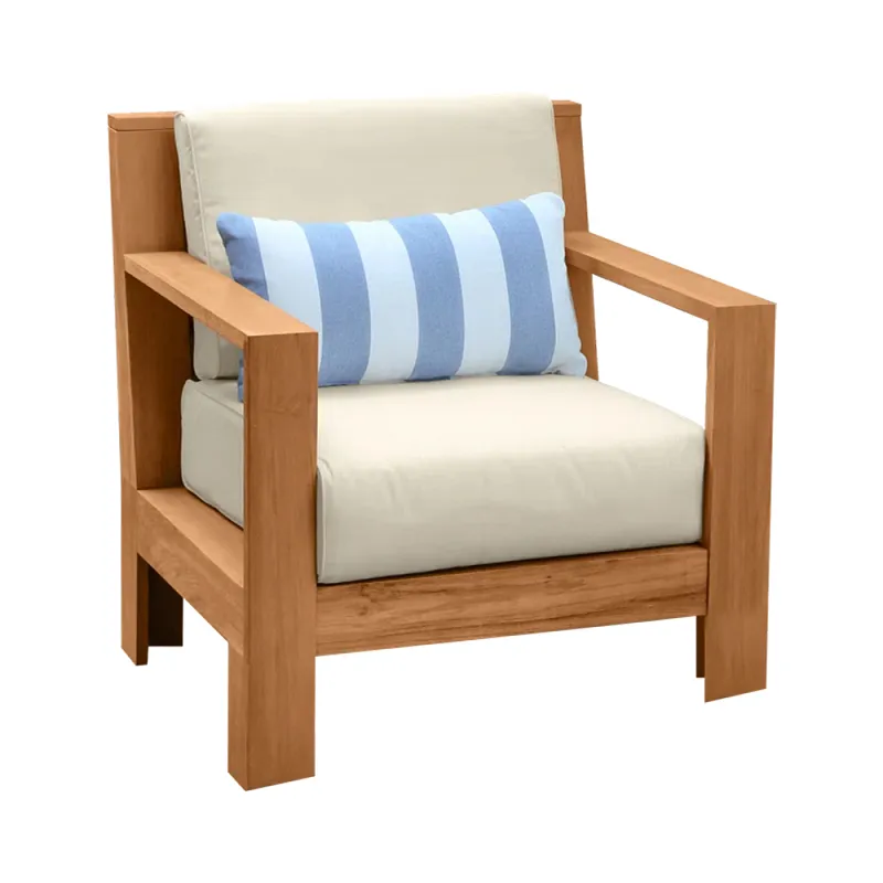 Хотя материалы и конструкция этого стула чрезвычайно прочны, уход за ним невероятно прост. Деревянные детали нужно только регулярно протирать влажной тканью. Иногда использование защитного масла для дерева может лучше защитить и восстановить его блеск. Подушки также просты в уходе, а их водонепроницаемая поверхность делает чистку легкой, что позволяет легко справляться с разливами или пятнами, с которыми вы можете столкнуться на открытом воздухе. Эти тяжелые деревянные садовые стулья имеют современный и минималистский стиль дизайна, который подходит не только для домашних патио, террас или балконов, но и идеально подходит для открытых площадок в коммерческих помещениях, таких как кафе и рестораны. Его прочная конструкция и элегантный внешний вид делают его центром внимания в любой обстановке, предоставляя место для отдыха, которое одновременно функционально и привлекательно.