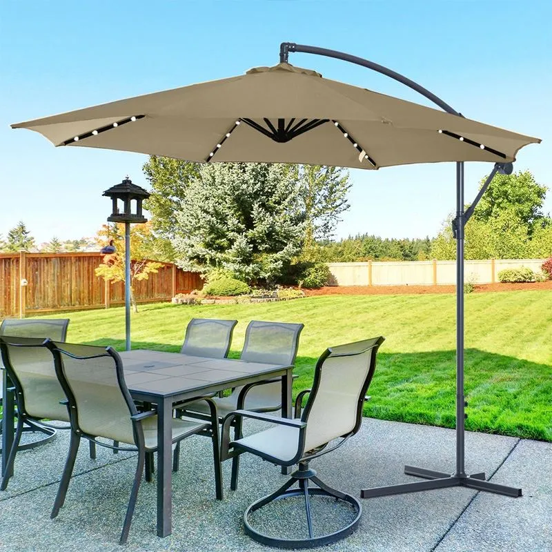 Консольный зонт с защитой от ультрафиолета обычно выполняет свою роль в течение дня и может использоваться в качестве украшения ночью. Наслаждайтесь бризом на вечеринках или на берегу моря. Мягкий свет перекликается со звездами на небе, и это красиво. Подсветка не только увеличивает визуальную привлекательность в ночное время, но также добавляет комфорт и удобство для встреч на свежем воздухе или отдыха. Пользователи могут выбрать различные цвета зонтов, подходящие для места проведения и атмосферы в соответствии со своими личными предпочтениями, чтобы зонтик мог идеально интегрироваться в окружающую среду днем и ночью, удовлетворяя различные потребности в атмосфере.