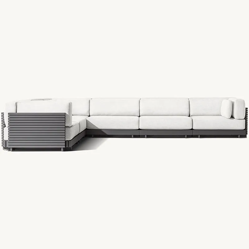 Каждый диван оснащен плюшевыми, всепогодными подушками, которые обеспечивают превосходный комфорт и поддержку. Подушки изготовлены из прочной ткани, которая выдерживает воздействие солнца, влаги и пятен, гарантируя, что они останутся свежими и яркими в течение сезонов использования. Нейтральная цветовая палитра подушек прекрасно дополняет металлический блеск алюминия, создавая шикарный и целостный вид.